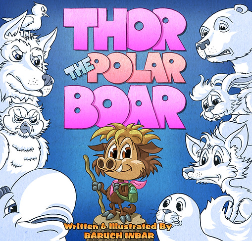 The acclaimed book by author and award winning artist, Baruch Inbar, tells the whimsical and highly entertaining story of THOR, a young boar who felt from a very young age that he does not belong to the muck and mud into which he was born among the other boars, and so he embarks on a grand adventure to the NORTH POLE, where he feels he would be much better off living in the pristine snowy setting along with all the white coated majestic animals.